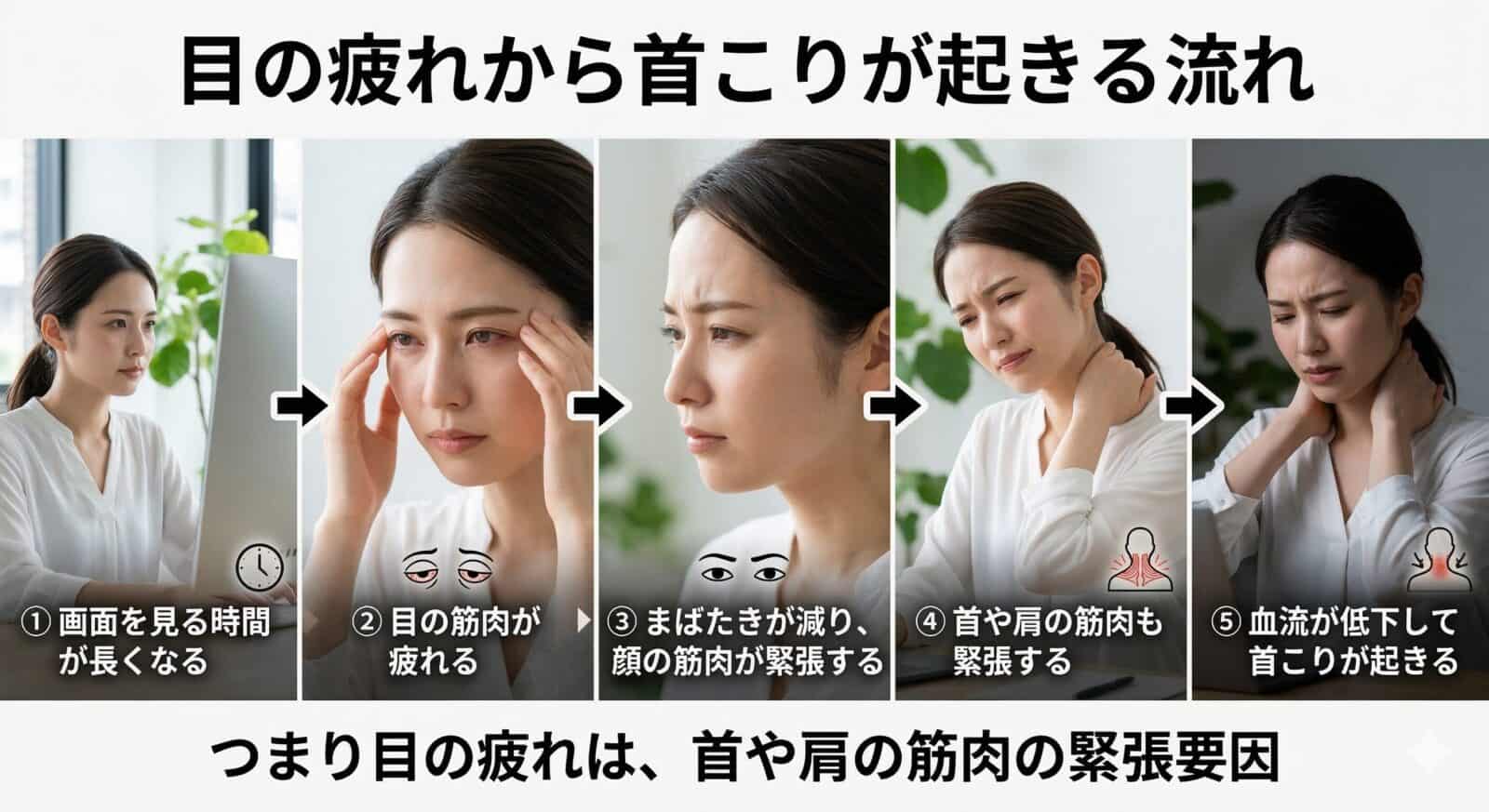目の疲れから首こりが起きる流れ