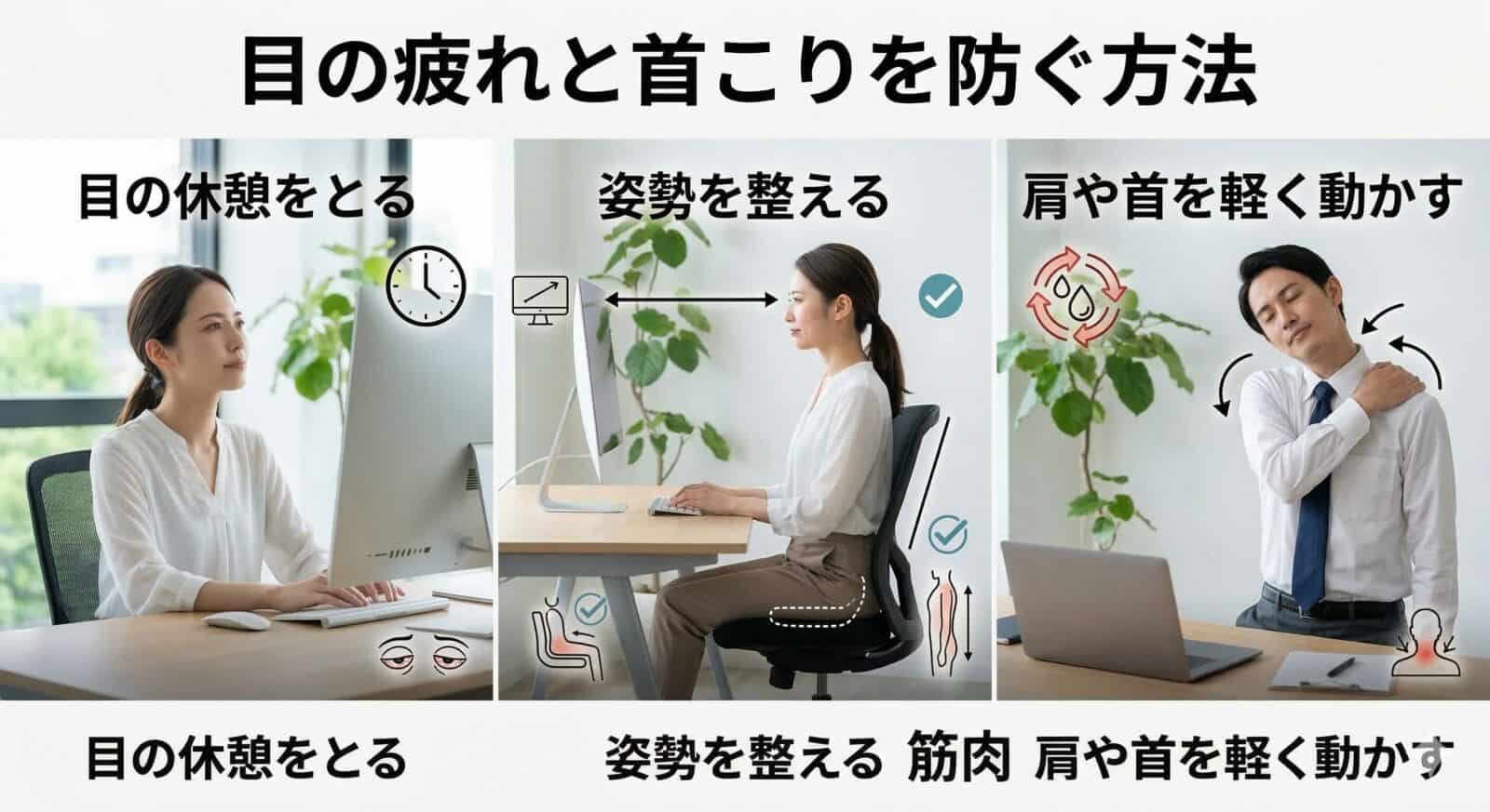 目の疲れと首こりを防ぐ方法